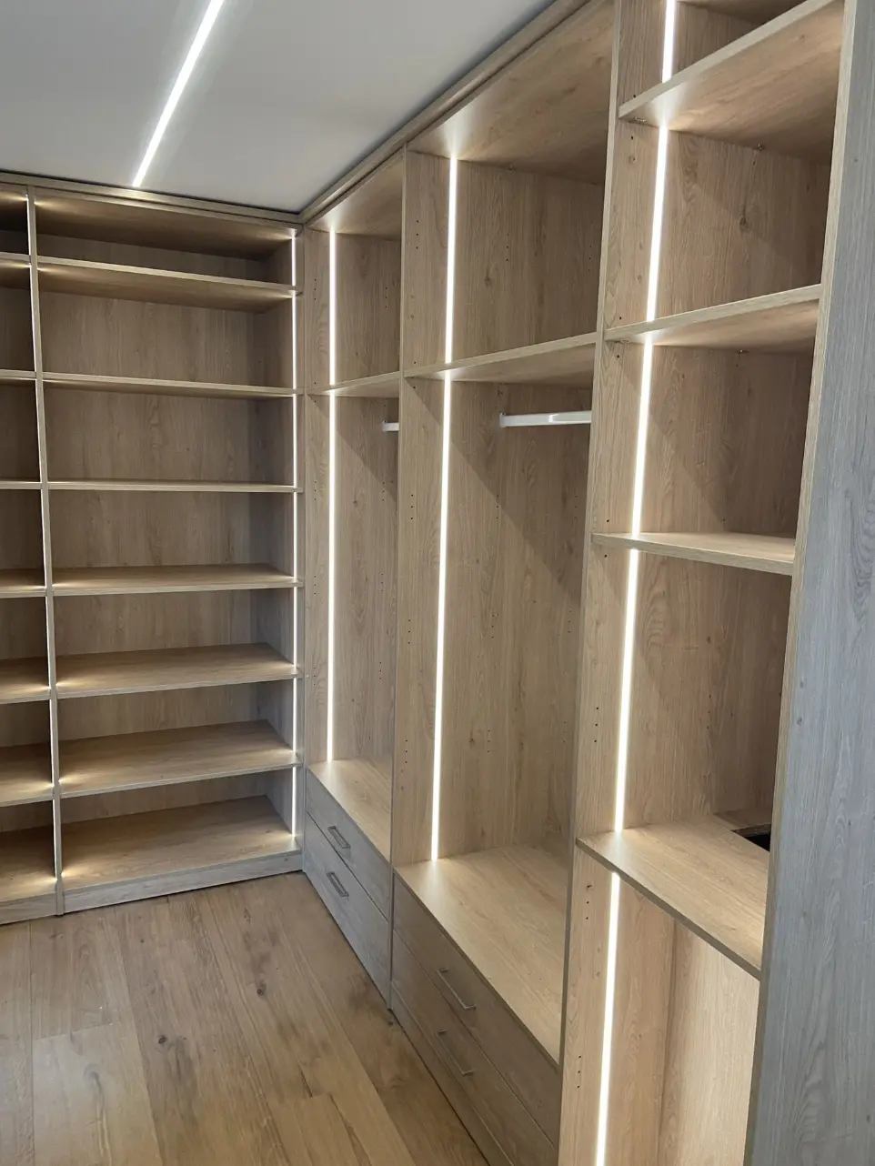 Contrairement aux meubles en kit de la grande distribution, un dressing sur mesure s'adapte au millimètre près (sous-pente, coin perdu, ...). Le prix est calculé selon la complexité des aménagements intérieurs et le choix des façades.